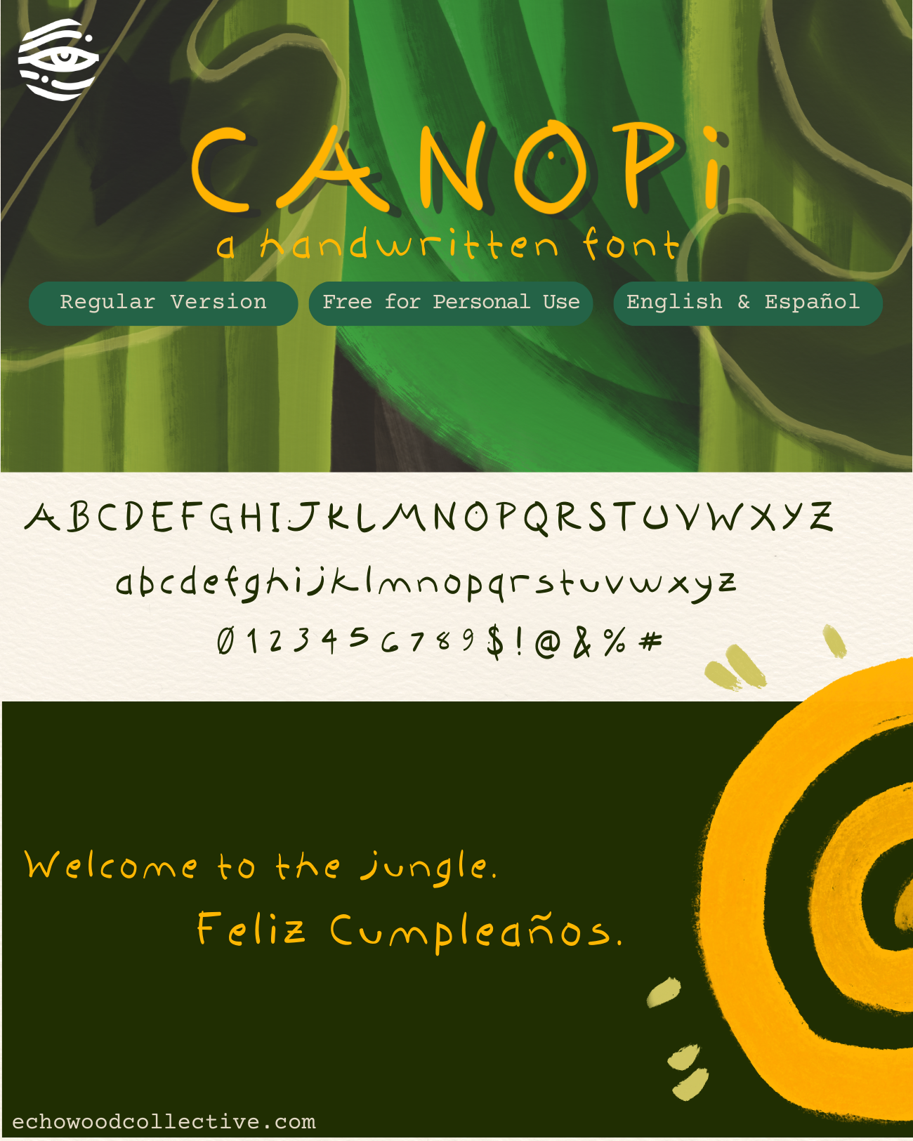 Bring the lush energy of jungle canopies to your designs with Canopi—a handwritten display font that captures the organic flow of nature with jungle-inspired brush strokes.